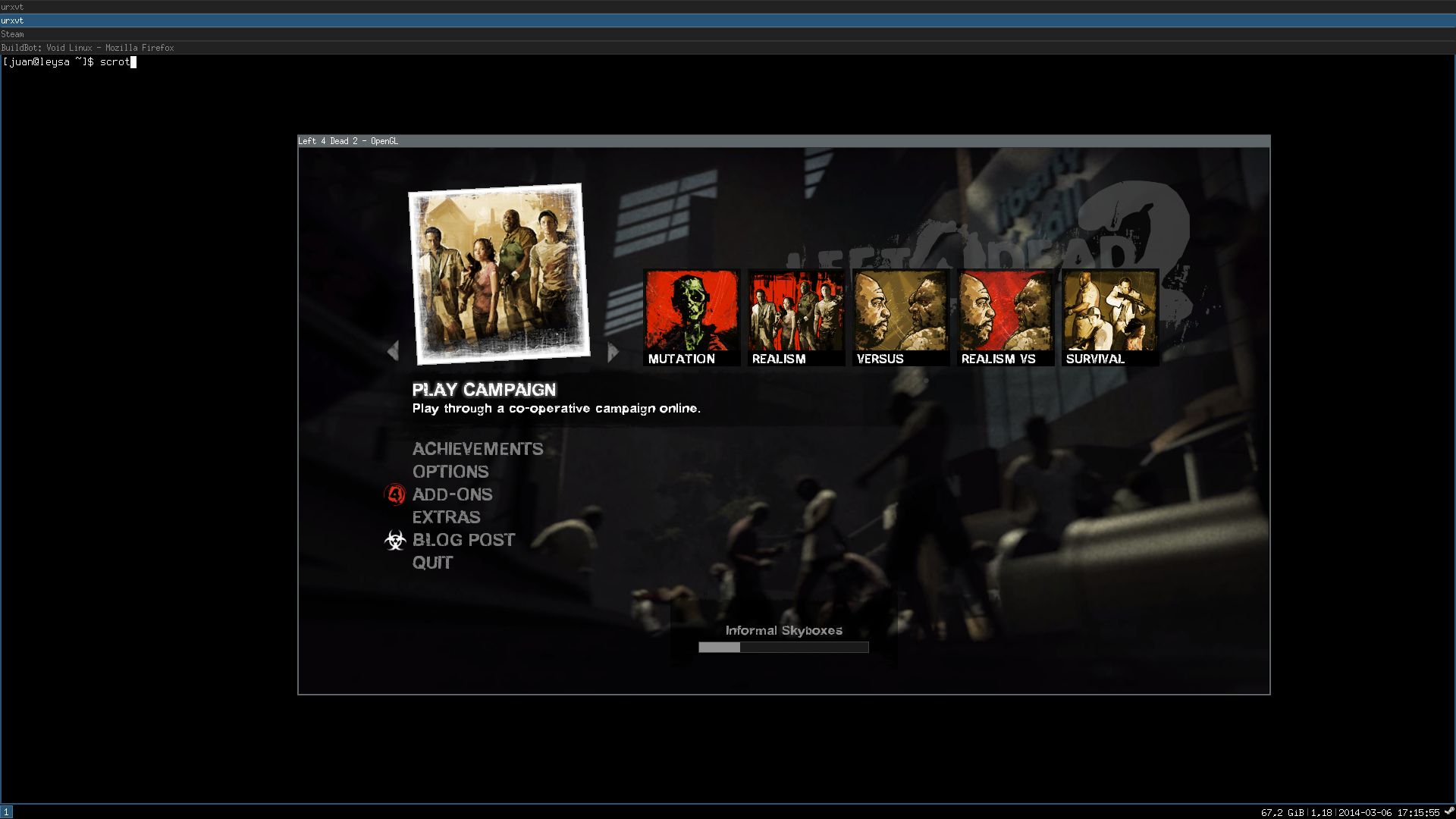 Valve’s steam client is now available for x86_64. Thanks to the recent improvements made to xbps-src, we are now able to build 32bit pkgs for x86_64 by reusing the same unmodified build template files.