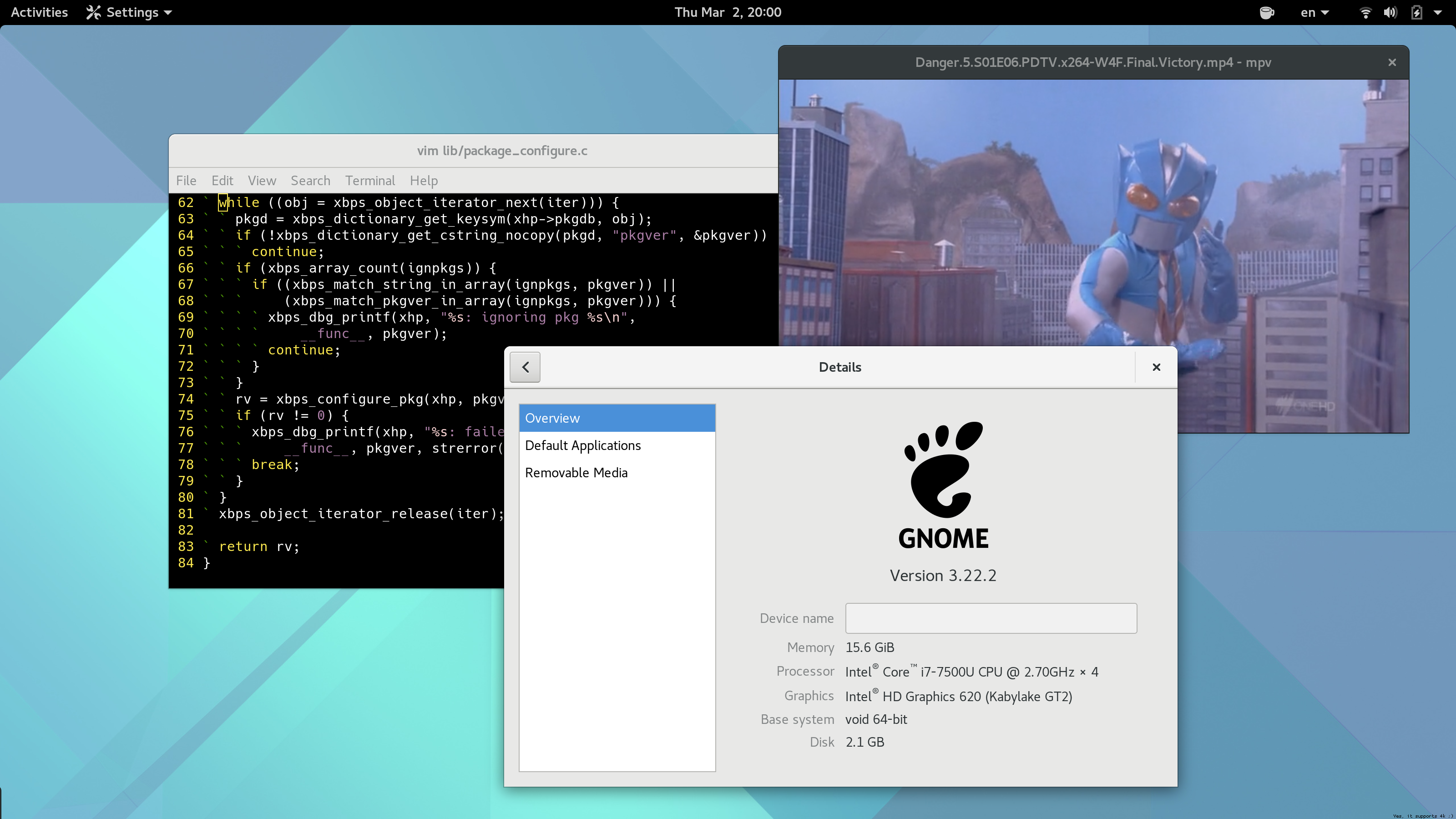 Screenshots of Gnome-3.22 running on Void: